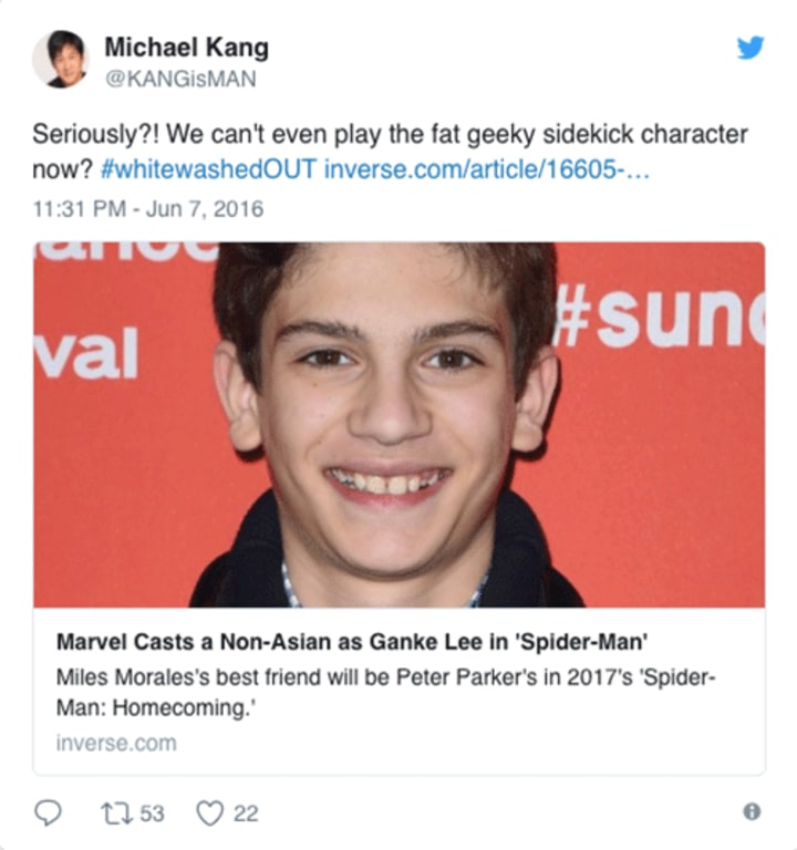Comicbook.com reports that Barbieri's (unknown) role will be based on the character of Ganke Lee, from the Ultimate Spider-Man line. Drawn as an Korean American, Lee is one of the best friends of alternative Spider-Man, Miles Morales. It is safe to say, some people aren't happy if the news is to be true!