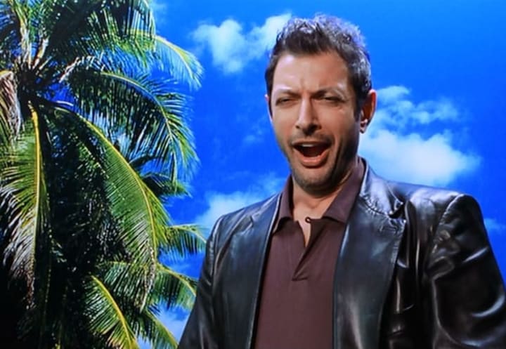 When we last left Dr. Malcolm, he was happily snoozing away on his sofa with Julianne Moore, after the exhausting events of Jurassic Park II: The Lost World. There was a mention, but no sightings, of the Chaos Theory mathematician in the following two films, but we doubt that Ian gave up his high adrenaline lifestyle for good. Eagle-eyed viewers may have spotted a Dr. Malcolm shaped Easter Egg in Jurassic World: Assistant Kate (R.I.P.) is spotted reading Malcolm's book, God Creates Dinosaurs, on the monorail. Clearly a gripping read, the popular novel also appears on a desk in the command control room for a further name check. Let's be honest though, a picture of the face is just no substitute for the man himself.