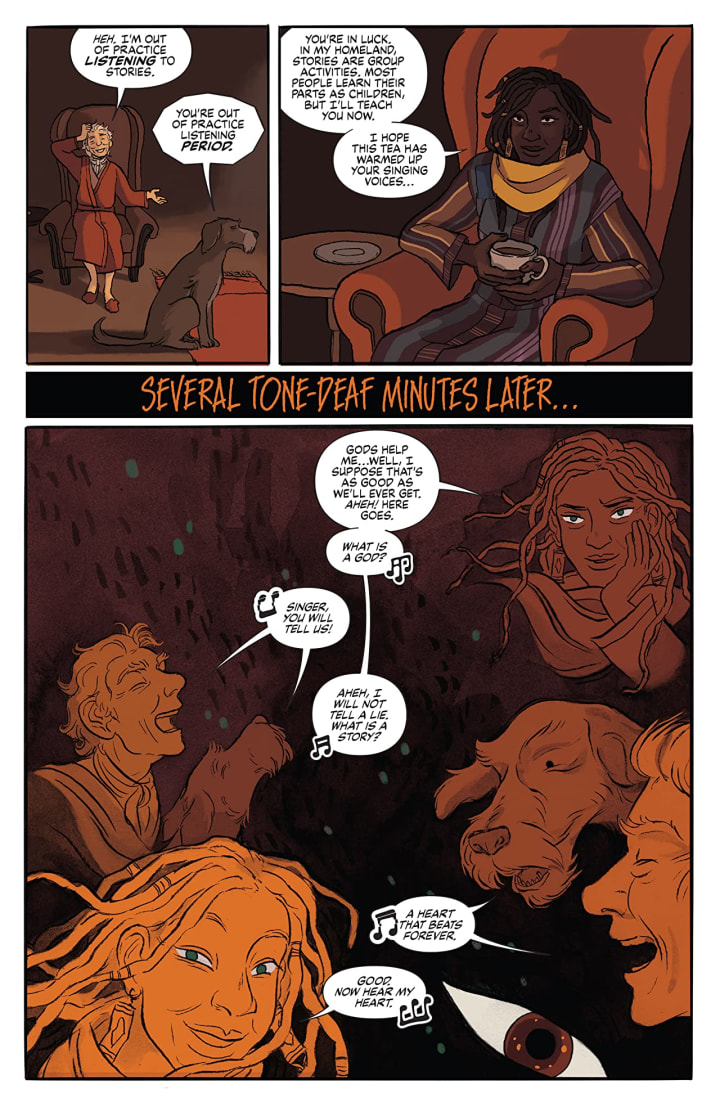How we see this being structured and how the layers within the story are woven into, through and around the tale within a tale is so utterly spectacular to see. To be honest it has been many years since I was a wee lad at camp being told stories of our peoples history and past and this reminds me of that so much that memories just flood back and it’s so nice. Then to see how everything here works together to create the story’s ebb & flow as well as move the story forward is really well done.