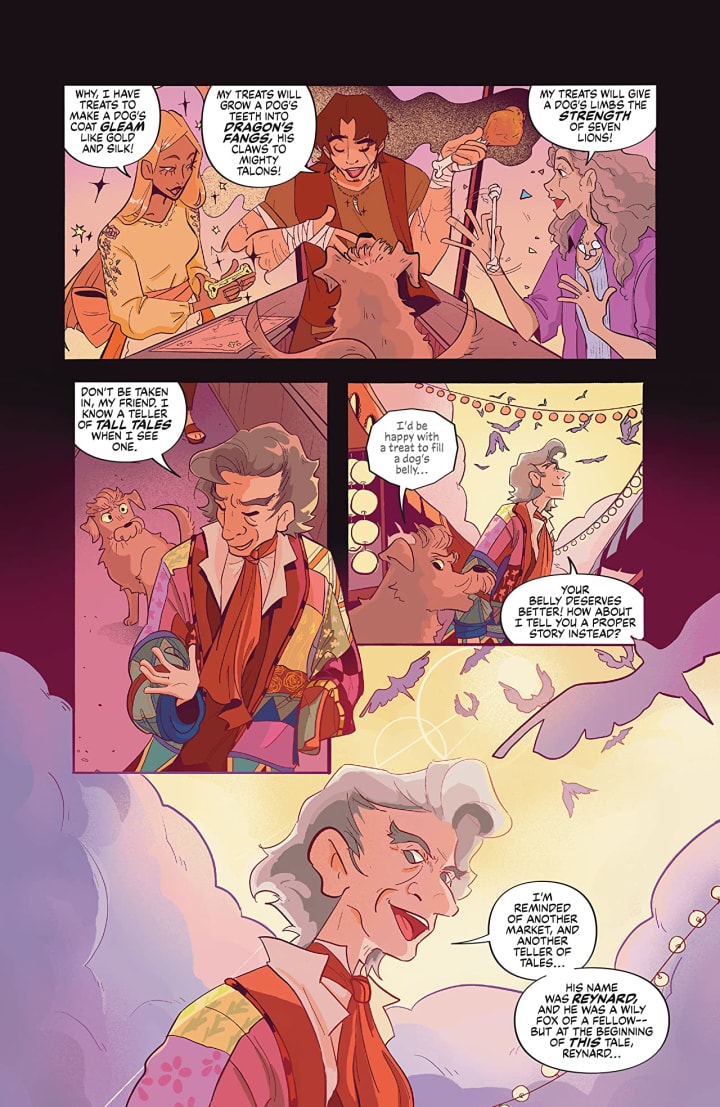 Meet Reynard, a wily but penniless fox who boasts to his learned friend Stork that he will make himself a fortune at the market, despite having nothing to sell but an empty pouch.