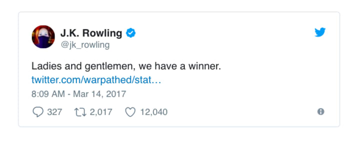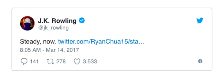 As anyone with a Twitter account will know, Harry Potter creator JK Rowling is one of the most active celebrities on the site.