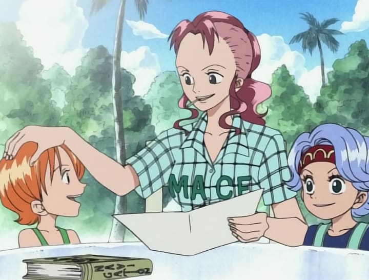 My favorite part of this arc was Bell-Mere. She is the first badass female character we have seen so far. She went from being a marine to a mother and took so much pride in being a mother she would have rather died than admit she didn't have her girls. Besides Luffy, she is the only character that gets the drop on Arlong and even though it is short-lived, it is still awesome to see her point her rifle in his face. I believe her strength made Nami and Nojiko such strong independent women.