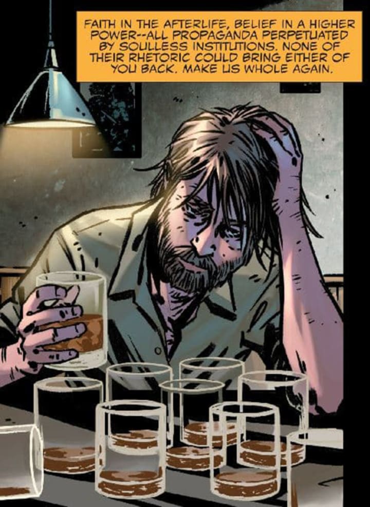 As the panels wind on and on, we get to see a drunk man, hurt and lost. All he wants is to join his family and so he seeks out for knowledge. Kaecilius couldn't handle the loss of his dear ones. Soon, he became an inebriated man, developed crude opinions on God and other falsified concepts like Afterlife.