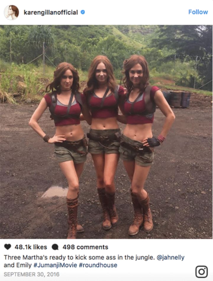 We have since found out that our A-list cast will be playing avatars of four kids who find themselves in detention. Like it or lump it, but if Gillan is an avatar, that is your pretty standard heroine look from video games of yesteryear. As a middle finger to her haters, Gillan recently shared some behind-the-scenes footage of her and her stunt doubles on set in Hawaii (tiny outfit included).