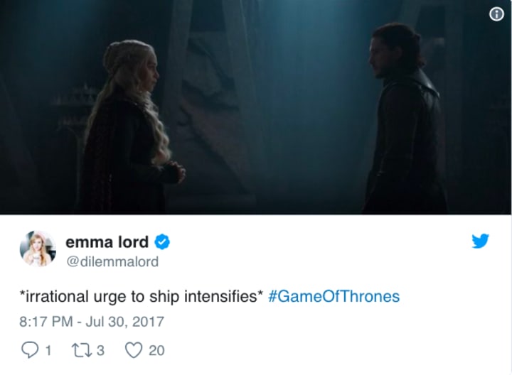 However, there's also a slight reluctance to ship these two characters, given that Jon Snow is (albeit unknown to them both) the son of Rhaegar Targaryen, Daenerys's brother. This was somewhat addressed by Dany during the episode when she claimed to be the last Targaryen in existence - a detail that didn't go unnoticed by fans.