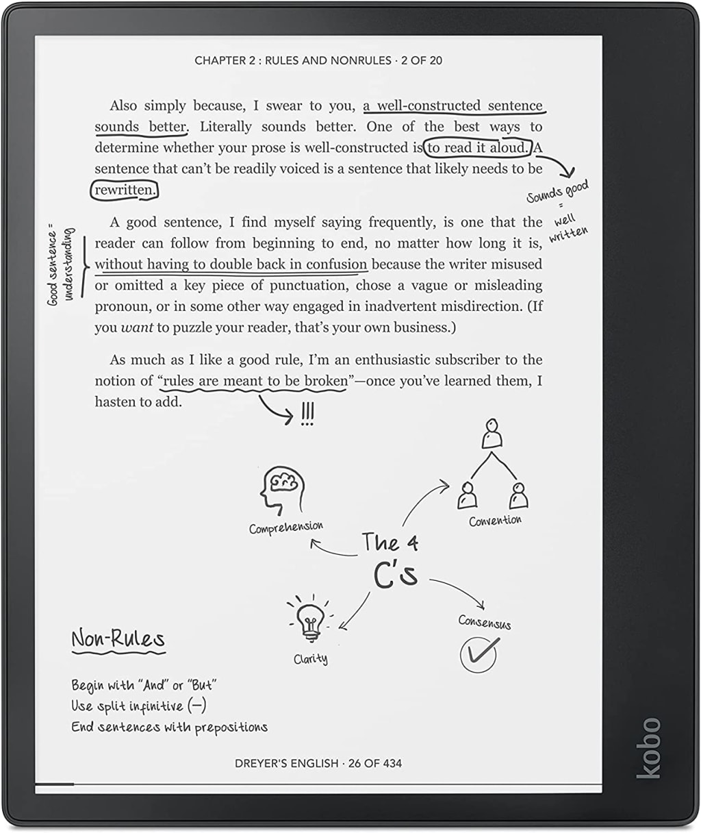 One of the standout features of the Kobo Elipsa is its ability to mark up eBooks. The Kobo Stylus lets you write directly on the page, just like a pen on paper, making it easy to underline, circle, or highlight nonfiction reads, essays, or assignments. When an idea sparks, you can easily write it down in the margins, making every eBook and PDF your own. You can also easily save, organize, and find all your annotations, making it a breeze to keep track of your notes and ideas.