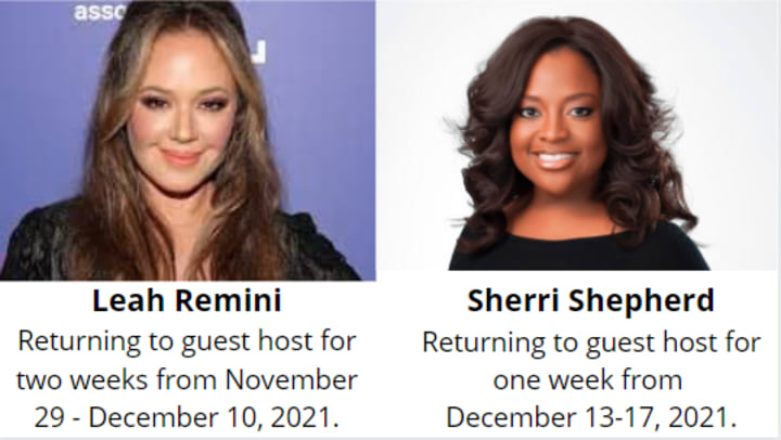 Returning guest hosts include fan favorites, Leah Remini for two weeks from November 29-December 10, and Sherri Shepherd returns for one week from December 13-17. These two women are returning to close out this year, but people are speculating that their returns are really "auditions" for the permanent host position.