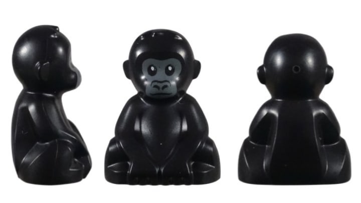 The baby gorilla is the reason I bought this polybag. The cute infant creature piece was only available in this polybag and the much bigger and much much much more expensive Jungle Explorer Helicopter set. My favorite part of this piece is the head. The small ears give it an animal appearance but the dark bluish grey face brings it to life. Those adorable eyes, distinct nose and cute mouth are amazing. Although, having the baby gorilla crossing its legs and resting its hand in front gives the impression of a statue rather than a living animal. My first thought when seeing this baby gorilla sitting on the 2X2 round dark tan tile piece in the jungle build was that of a statue. Specifically, I saw Indiana Jones removing it from a pedestal.