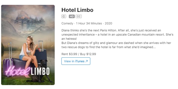 Hotel Limbo Available for Streaming on Amazon Prime and Rental on iTunes.