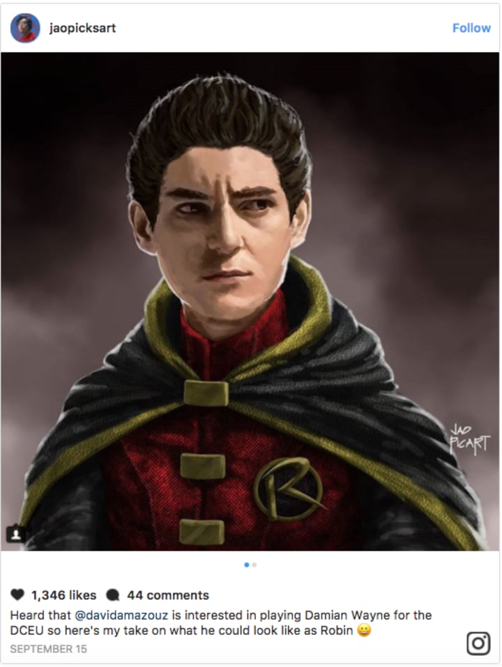 I would certainly think twice before shooting him down though, especially after seeing this concept art of Mazouz as the hotheaded Damian Wayne, drawn by the brilliant Jao Picart (don’t forget to click right to see Mazouz with the #Robin mask):