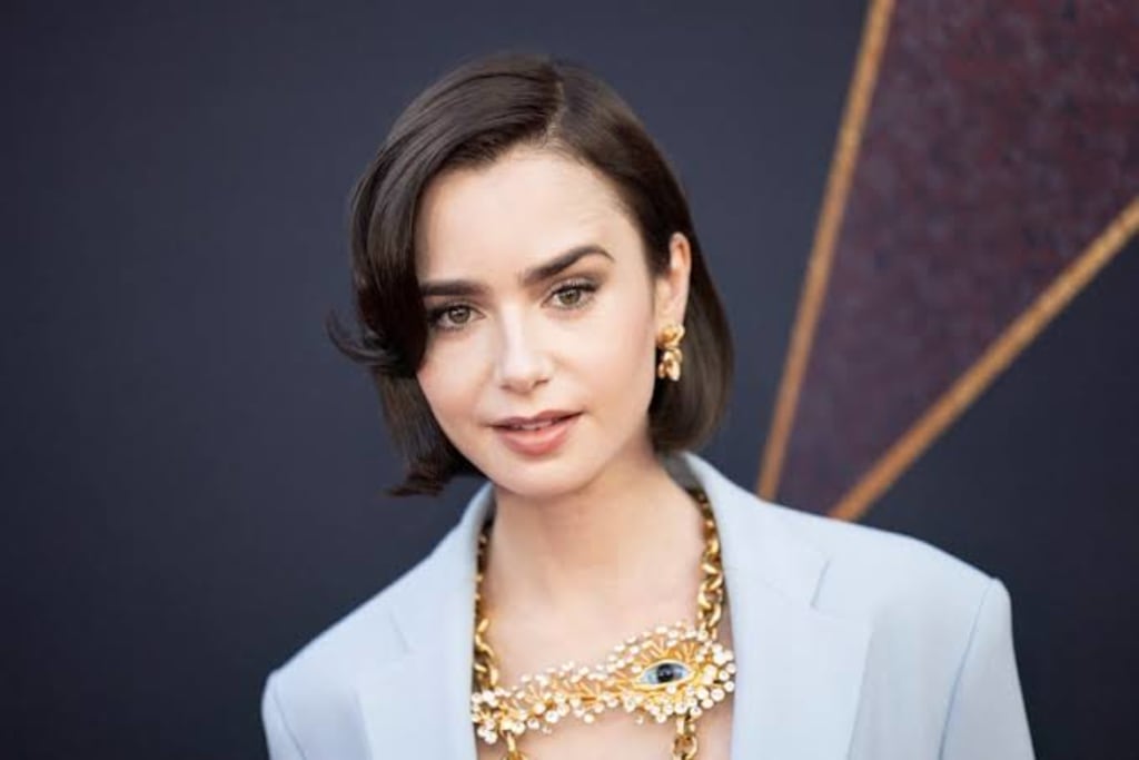Lily completed the look with a collection of striking bracelets that enhanced the golden tones of her dress. For footwear, she chose velvet mules with heels, perfectly complementing the overall luxurious feel of her outfit. Her look was a perfect blend of classic glamor with modern touches, fitting for a big night like the "Emily in Paris" premiere.