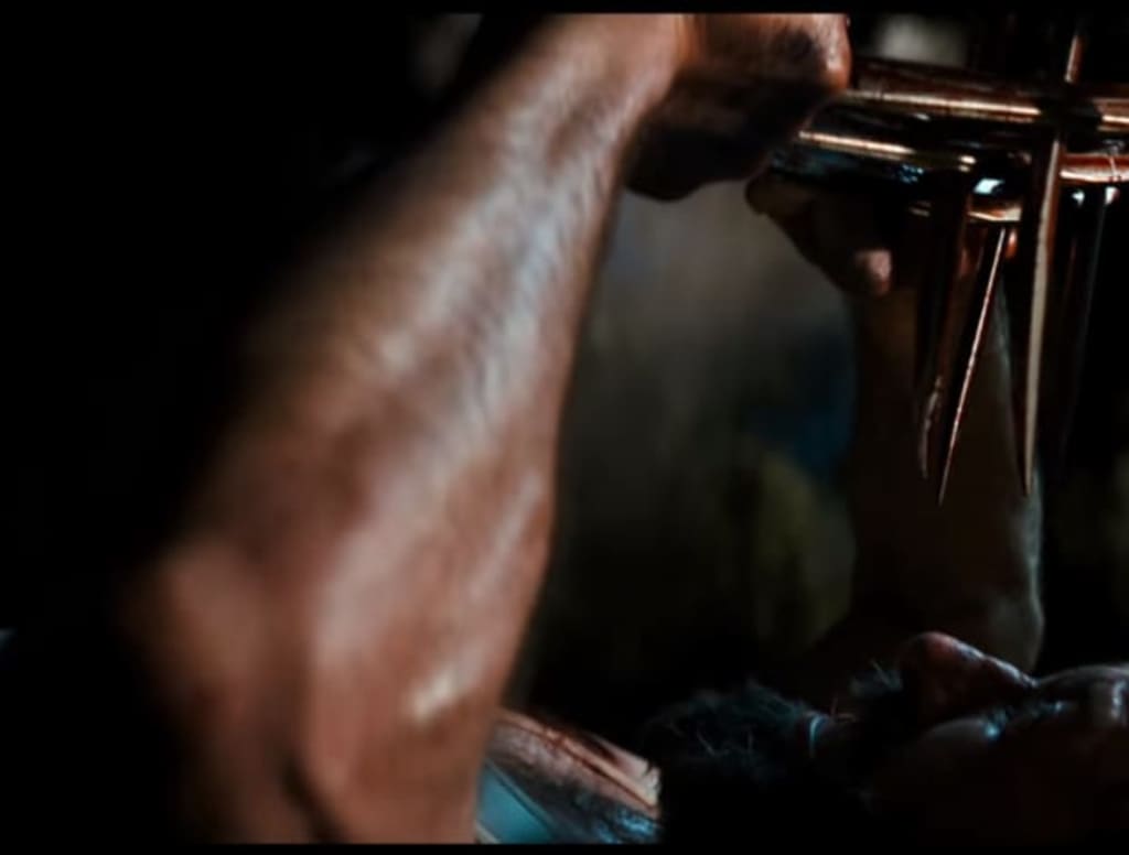 In the image, we can that Wolverine is being attacked by an unidentified assailant with what looks to be adamantium claws similar to his own. We can probably assume it's not X-23, a.k.a. Laura Kinney, the little girl seen accompanying Wolverine in the trailer since her claws are only two-pronged, whereas Wolverine's are three-pronged; the assailant in the trailer can be clearly seen with at least six metal claws - as in a pair of three-pronged claws.