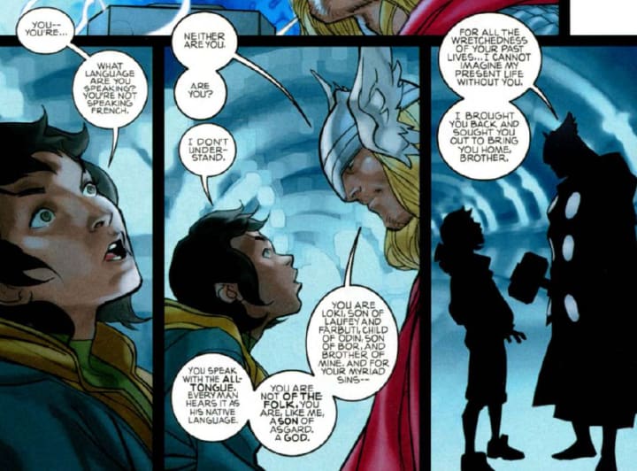 During the comics 'Siege' event, Loki was killed by the Void, but due to earlier schemes he had his name removed from the Book of Hell, and was returned to life as Serrure, a young hustler on the streets of France. He is located by Thor, who is able to restore Serrure's true identity as Loki, but omits the memories of his former crimes, hoping to give his brother a clean slate in his new life. Thor takes Loki back to Asgard, and while the other Asgardians are wary of him at first, they eventually grow fond of the child.