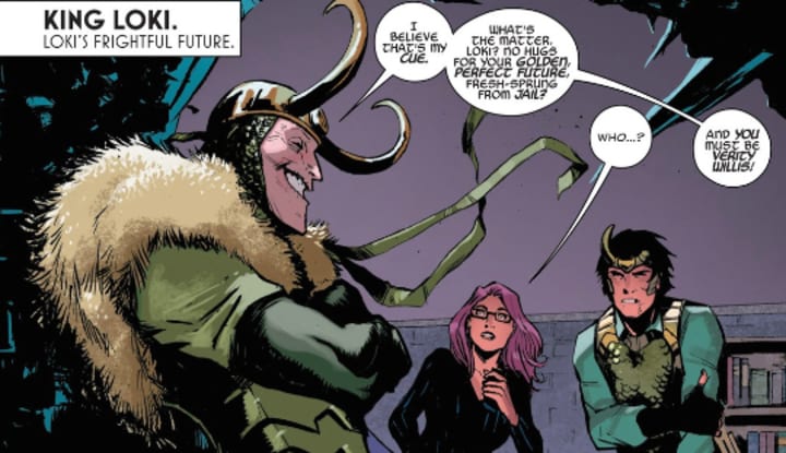 During the Loki: Agent Of Asgard series, Loki places himself at the service of Asgard's All-Mother, Freyja, in the hope of repenting for his past crimes. Unfortunately, it seems Loki's path to redemption may be derailed with the appearance of King Loki. King Loki claims to be Loki from the future, returned to his evil ways. Loki is disheartened, led to believe that a return to his previous dark path is inevitable.