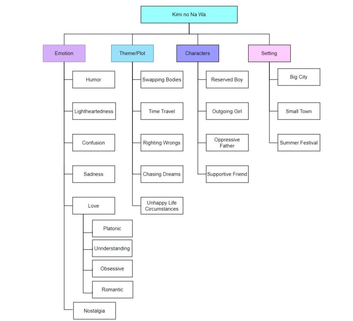 Then I pick a series/movie that matches at least one category, with preferential treatment being given to emotion and theme/plot. Once I’ve matched at least one, I look to see if any others match. Movies/series that match in the most categories are recommended first, and the ones that match the least are recommended later. If less than half of a category matches then I consider it a partial match. Let's put it into practice: