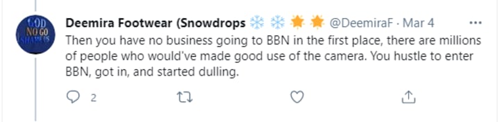 In response to the tweet, a fan of the BBNaija star said:
