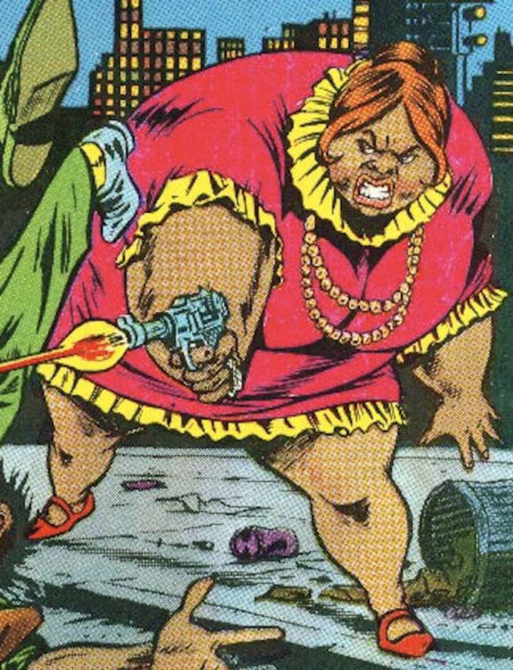 She has no superpowers, but can apparently use her extreme weight to hit with respectable force. Perhaps, much like Kingpin, we'll see the beginnings of another crime lord running a muck through the city.