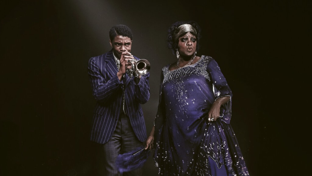 Brief synopsis: successful blues singer, Ma Rainey (Viola Davis), heads north to Chicago to meet up with her band to make a recording of some of her songs. One of her band, Levee (Chadwick Boseman) causes a rift with his ambition and passion.
