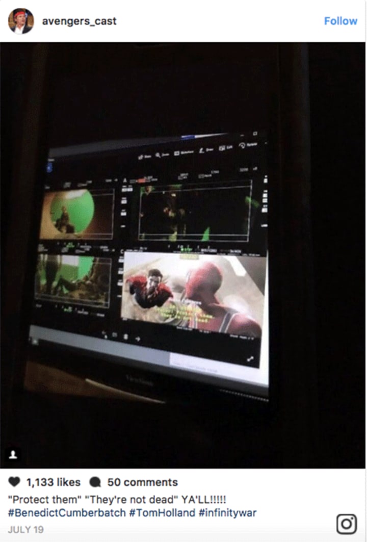 Reddit may be notorious for citing unconfirmed sources, but note that the name above the monitor says Jesse Olivares. Doing a little research, Olivares has worked on several MCU projects and is currently a key video assist engineer on Infinity War. We still don't know who leaked the image, but expect them to feel the wrath of the Russo brothers. With the Infinity War cast expected for a huge panel at San Diego Comic-Con, prepare for a whole galaxy of stars and spoilers during the comic book event of the year.