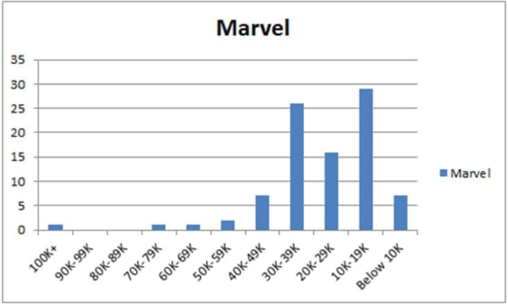 In a normal month, you'd expect to see both #Marvel and #DC with a couple of titles selling over 100,000 copies, with the sales bands then filling out with, say, a handful at 90,000-99,999, and so on. The Comics Beat did an initial analysis for February 2017, though, and the results were shocking. As one of the most analytical sites out there, The Comic Beat have a strong reputation for accurate number-crunching, and they'd never seen Marvel's numbers shifted so far down the chart.