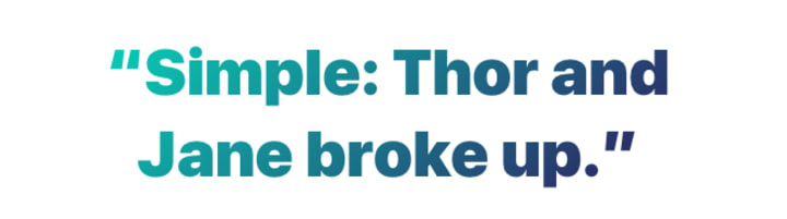 “Simple: Thor and Jane broke up.”