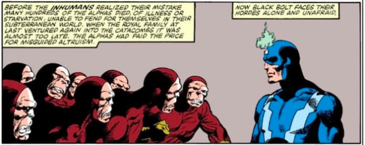 Take, for example, the Alpha Primitives. According to the comics, an Inhuman geneticist named Avadar persuaded the ancient Inhuman rulers to let him develop a slave-race. He created the Alpha Primitives, a subhuman species who are genetically manipulated to have only the most basic thoughts and emotions. They look after all the basic tasks in the city of Attilan, from sanitation to food production. Given the disturbing idea of a 'slave race' that serves the heroes, nobody had expected this race to appear in Marvel's Inhumans — until today.