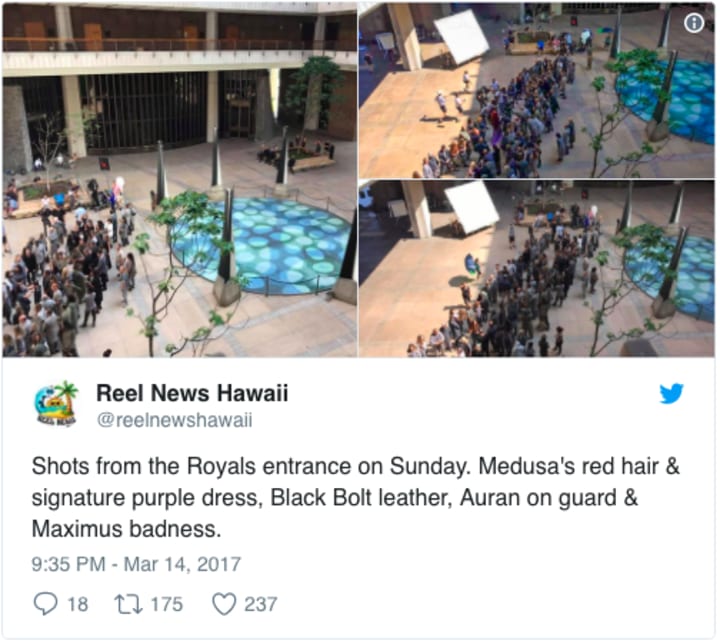 Reel News Hawaii is swiftly proving to be the ultimate source of Inhumans news, posting countless set photos. These latest images give us our first glimpse of Medusa's iconic red hair and Karnak's distinctive green hoodie; they also show what seem to be Alpha Primitives.