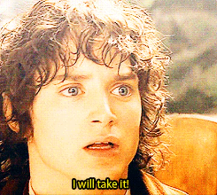 "I will take it! I will take it! I will take the Ring to Mordor!"