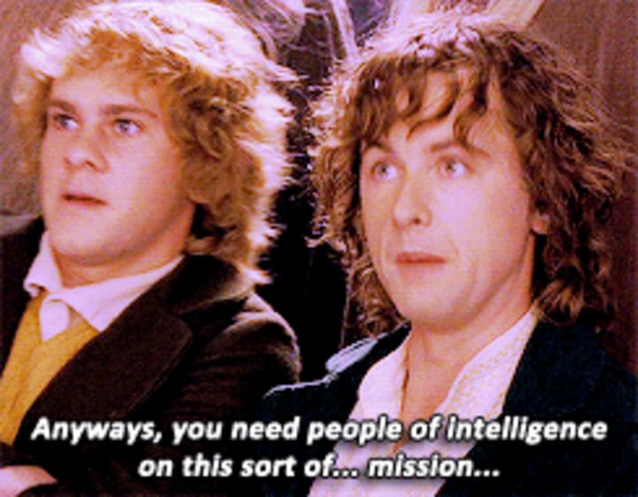 he proudly remarks even as he clearly demonstrates his lack of knowledge about the mission quest thing itself. The purpose behind the quest isn't as relevant to the ESFP as the fact that he or she will be there, in the midst of the sensory experience, and helping the people who matter to him or her. ESFP's are incredible at caring about people; if they know someone they care about is in trouble or needs cheering up, they will come up with elaborate, exciting, and engaging plans to fix the problem. They are one of the best at living life to its fullest and reminding others to do so as well. The ESFP is the definition of a "people person". A highly social creature always looking for excitement, Pippin is merely happy to be involved, whatever the quest may be, which he clearly indicates as he expresses,