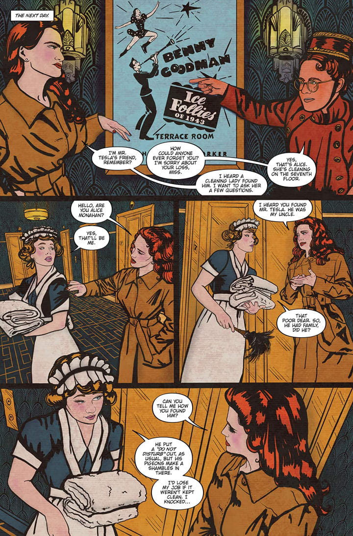 The more we see of the this story the more I love Minky! Now that we’ve seen her get close to Tesla and his murder she’s using those detective skills of hers to root out what she needs to know and do to find this Death Ray before anyone else can get their hands on it. Especially the Nazi’s! Cynthia continues to impress me mightily with her talent, skill and sheer chutzpah that translates right into Minky. This was a time when women were overlooked or dismissed and yet were able to use their smarts and wiles to do things men couldn’t dream of accomplishing. Personally it is stories like this that inspires me because it really takes some creativity and ingenuity to get this to work while demonstrating all the obstacles that they face along the way.