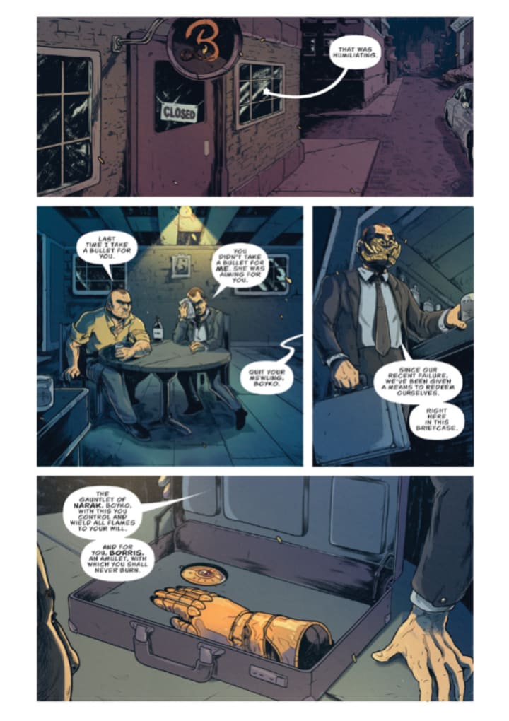 I am really digging this book already and there are some great twists and turns that we encounter here that we weren’t expecting to see and it’s rather glorious to experience. The opening here however is where things get interesting and start off this whole slew of madness that’s to come. I love the idea of these artifacts granting the user some sort of ability and it really reminds of Warehouse 13 in some aspects and I am totally digging that. I wish they would’ve used artefacts to fight crime or something that would’ve been amazing. The brothers however are a far cry from being considered good guys and their use of these artefacts well lets just say they think these will make them powerful. It does exactly what it should do too and that’s get the reader excited for what we’re going to see and it does it extremely well too.