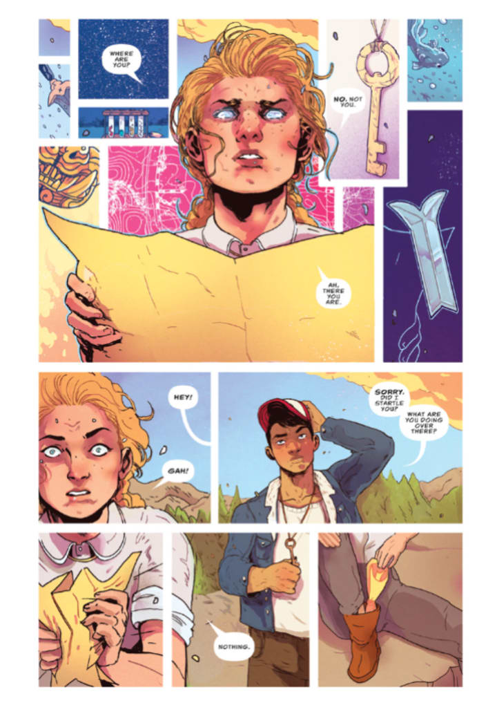 The interiors here are utterly marvellous. The linework is great and how we see the varying weights and techniques being utilised to create the detail work that we see is sensationally rendered. The facial expressions and body language that we see further the characterisation beautifully and really make a great impact upon the reader. We do see some great utilisation of backgrounds throughout the book and how they work within the composition of the panels bring us some great depth perception, a sense of scale and the overall sense of size and scope to the book is stupendous stuff. The utilisation of the page layouts and how we see the angles and perspective in the panels show a remarkably talented eye for storytelling. The colour work is beautifully rendered as well. How we see the various hues and tones within the colours being utilised to create the shading, highlights and shadow work is laid down gorgeously. I mean between the colour blocking and gradation how we see the colours blending and the hues and tones it just creates this sensational finish to flesh tones or creating depth and dimension in clothing.