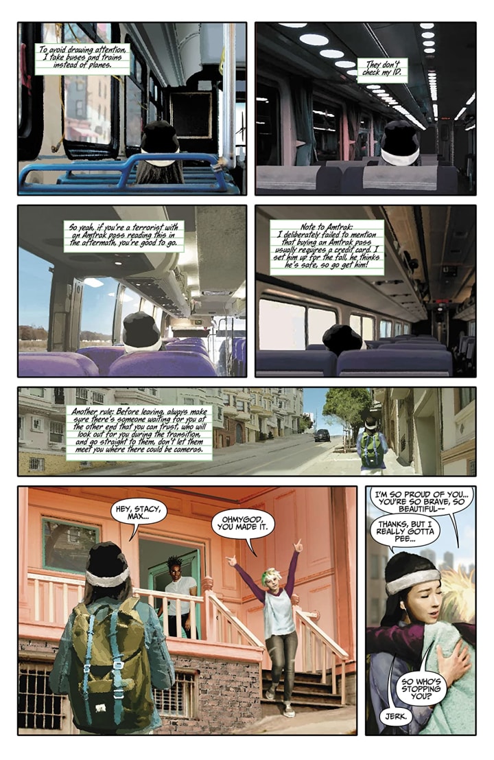 I love the way that this is being told. The story & plot development that we see through how the sequence of events unfold as well as how the reader learns information is presented exceptionally well. The character development is phenomenal thanks to how we see the dialogue, the character development and how they act and react to the situations and circumstances they encounter. The pacing here is great and as it takes us through the pages revealing the story, introducing the characters and just this part of their world is beautifully done.