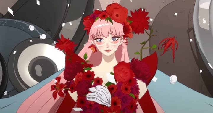 Another aspect of U is that the A.I learns about the users strengths and weaknesses and enhances them, making strengths and talents more prominent in each user. For Suzu, this means enhancing her already beautiful singing voice. Taking on the persona of a pink haired pop star and calling herself Belle, Suzu is able to sing with confidence and passion for the first time since her mother died and with the anonymity of her avatar protecting her fragile self-confidence.