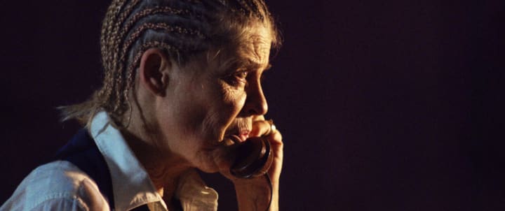 Linda Hamilton is a complete oddity in Easy Does It. She’s the top billed star on the poster but she has maybe 10 minutes of screen-time. The whole time she was on screen I could focus on nothing but the unfortunate choice of corn rows and men's suits as an aesthetic. Both Hamilton’s King George and Susan Gordon’s Blue are bending genders in Easy Does It but there doesn’t appear to be any point to their aesthetic other than it is colorful and different. Each actress gets to toy with accents and tics but nothing much is gained from these actorly bits of business.