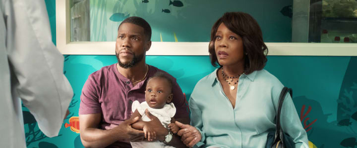 Fatherhood stars Kevin Hart as Matt. We meet Matt on the day of his wife’s funeral. Matt’s wife died shortly after giving birth to their first child, Maddy. It's a strong start and Kevin Hart proves right away that he can play grief. The film flashes back and introduces us to Matt's wife, Liz played by Deborah Ayorinde, and for a few minutes you think we might be watching an original take on single parenthood. Sadly, this only lasts about 10 minutes before we are into poopy diapers and baby vomit. It's a sinking feeling because you can sense what kind of movie Fatherhood could be if it weren't constantly striving for the lowest common denominator gags.