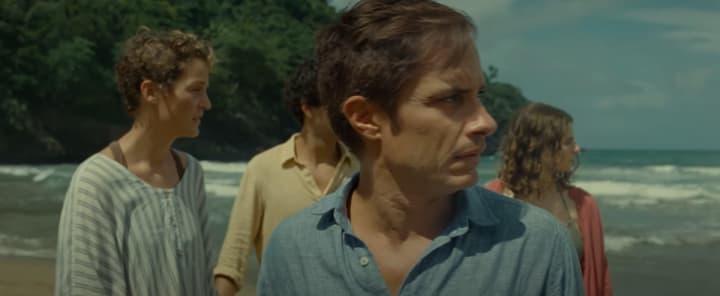 Old stars Vicky Krieps and Gael Garcia Bernal as Prisca and Guy Capps, a married couple on the rocks. Prisca and Guy are approaching a separation just as Prisca is dealing with a a potentially cancerous tumor and the potential of an early death. The two have won an all expenses paid trip to an island paradise via a contest they weren’t even aware they were part of. So, they pack up themselves and their two kids, daughter Maddox 11, and son Trent 6.