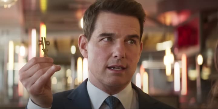 That's a perfect metaphor for where the Impossible Mission Force, headed up by Tom Cruise's super-spy, Ethan Hunt, find themselves. They are navigating a world saving adventure plot with very little knowledge of where they are going next. Every little twist and turn of the plot, every development surrounding the McGuffin, is delivered with precision and in a way that only gives us and these wonderful characters, just enough info to take us the next step. That the McGuffin happens to be a literal Key is quite a fun and clever detail that, again, I absolutely love.