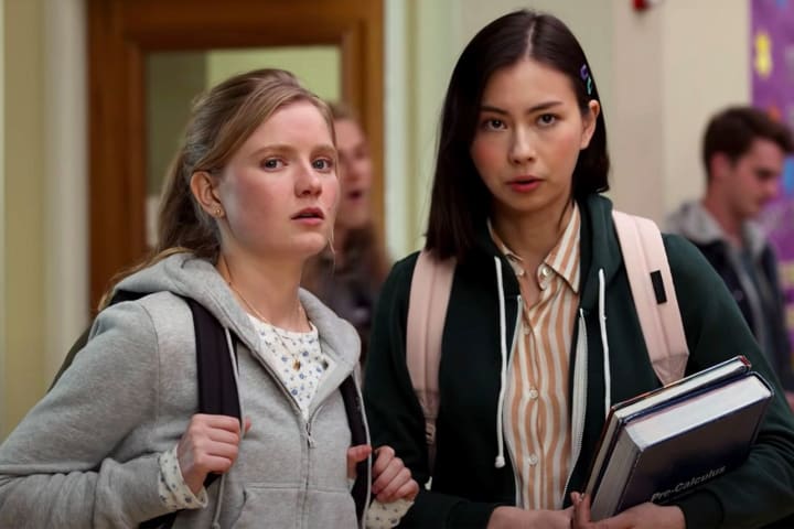 Moxie stars Hadley Robinson as Vivian, a bookish 16 year old whose happy to just keep her head down and get through the school year alongside her best friend, and fellow wallflower, Claudia (Lauren Tsai). Vivian’s perspective shifts with the arrival of a new girl in school. Lucy (Alycia Pascual-Peña) immediately does not fit in at the school. For one thing, she will not put up with the school jock, Mitchell Wilson (Patrick Schwarzenegger) who takes an immediate dislike to her.