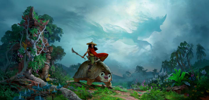 The story team behind Raya and the Last Dragon have taken every shortcut and cut every story corner. The story is deeply derivative and excruciatingly predictable. Disney's malice toward parents is even on display in the fact that Raya's mom is gone before the story begins and her dad gets turned to stone. Disney killing parents is one of the oldest and strangest clichés in movie history so, of course, it's on display in Raya and the Last Dragon, a story without any invention of its own.
