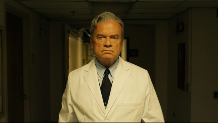The God Committee was written and directed by Austin Stark who decides to flash forward and backward in time to tell this story. In 2010 the transplant committee wrestles with their ethical quandary of needing a major financial donation and not wanting to just give the heart to a rich kid for money. In 2020, the story follows Boxer as he struggles with his own heart trouble while trying to make a major breakthrough to make transplant committees irrelevant.