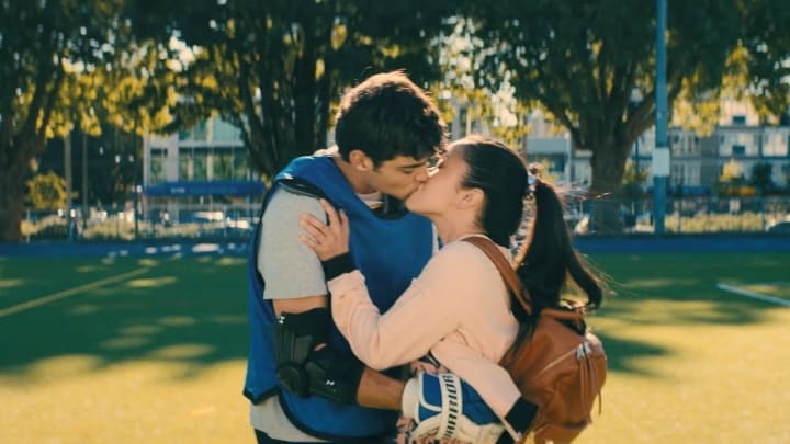 In both the book and the movie, Lara Jean first kisses Peter in order to avoid Josh after he receives her letter. However, while the movie has their kiss happening on the track during gym class, the book has a more motivated Lara Jean running down the hall and jumping into Peter's surprised arms before she kisses him.