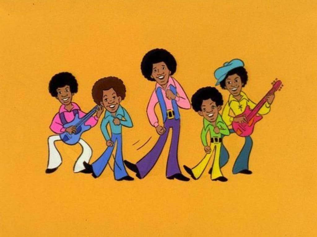 Yes, that's how the logo for this two-season animated series was spelled. This cartoon featured the five brothers (Michael, Marlon, Jermaine, Tito and Jackie, in case you've forgotten) in wacky cartoon situations with a couple of their tunes thrown into the episode. Young Michael Jackson had the standard cartoon pets--in this case, a pair of mice named Ray & Charles and a pink snake named Rosey (who I think was male). And the group also rode around in Tito's old yellow jalopy, even though they were depicted as international stars in the cartoon (to make them more down-to-earth, maybe?).
