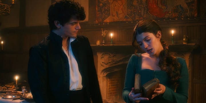 Other than the similarity in tone and humour to The Great, what made me love this show was its nostalgic storytelling and technical similarities to the 2004 film Ella Enchanted, starring Anne Hatheway. The show is edited with the infamous transitions of slides, diagonal swipes, and iris wipes, along with a sound effect of a sword being unsheathed. I immediately recognised it from the film. The show is also narrated by a middle-aged English man with a modern (and rather camp) diction, as does Ella Enchanted (except you don't physically see him in My Lady Jane). It reminded me of it so much that I would be very surprised if it wasn't one of the inspirations for the show.