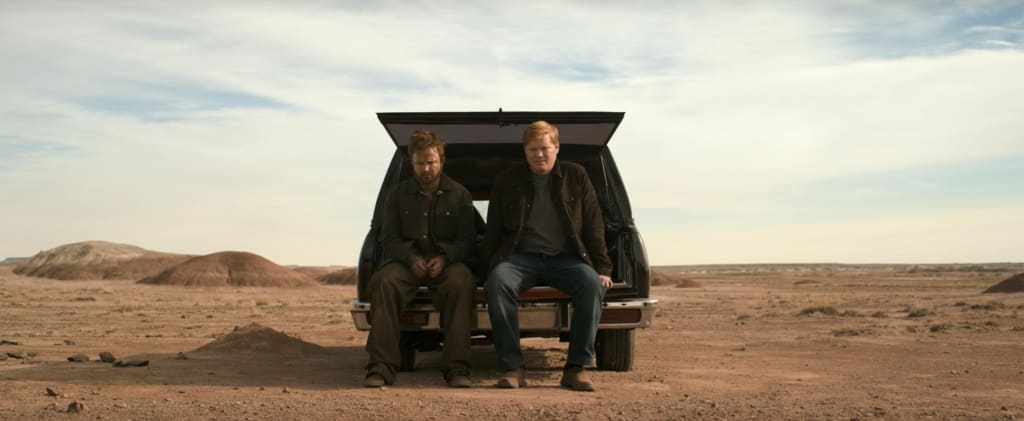 With his PTSD, Jesse has a ton of flashback moments. The movie plays out a little weird not only because of the flashback moments, but because the movie is supposed to be based right after the events of Breaking Bad, but in real life, six years have passed. All of the actors of the original series have been re-hired for this movie, but the six years have not exactly been kind to everyone. It's pretty obvious that Aaron Paul is older and I guess bigger than he used to be. The oddest moments are the flashbacks with Jesse Plemons, who plays Todd in the movie. Jesse Plemons is noticeably bigger and older than he was six years ago. He's almost unrecognizable in certain scenes.