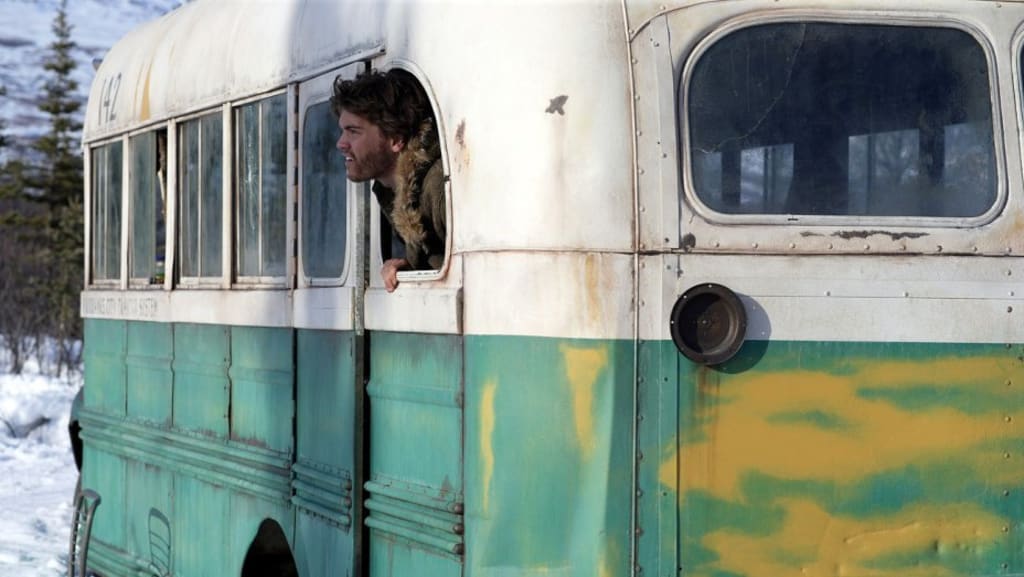 This movie starts off with this young guy's adventure to Alaska where he finds this abandoned bus in the middle of nowhere. At this point I thought it was going to be some sort of horror movie because usually when there's an a bus or vehicle there's someone living there. Lucky for the main character Chris aka Alex there's no one around. It looks like he's finally reached his goal and then we have this huge flashback.