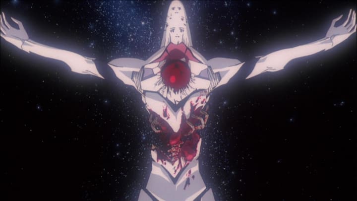 Somewhere around the halfway point of the anime, the story starts being told in a darker manner. The continuously action packed episodes are replaced by more grounded, cerebral episodes, showing us an insight into the traumas that many of the characters have endured in the past, as well as the truth and the real motive behind the Evangelions as well as 'The Human Instrumentality Project' - an event that would unite all of humanity's individual souls and fuse them into one in order to attain humanity's evolution. This would cause there to be no more insecurities or flaws in human beings, as everyone will be one and the same. This would also mean that there were no more humans on earth, as we alternatively see in the sequel film 'The End of Evangelion'.