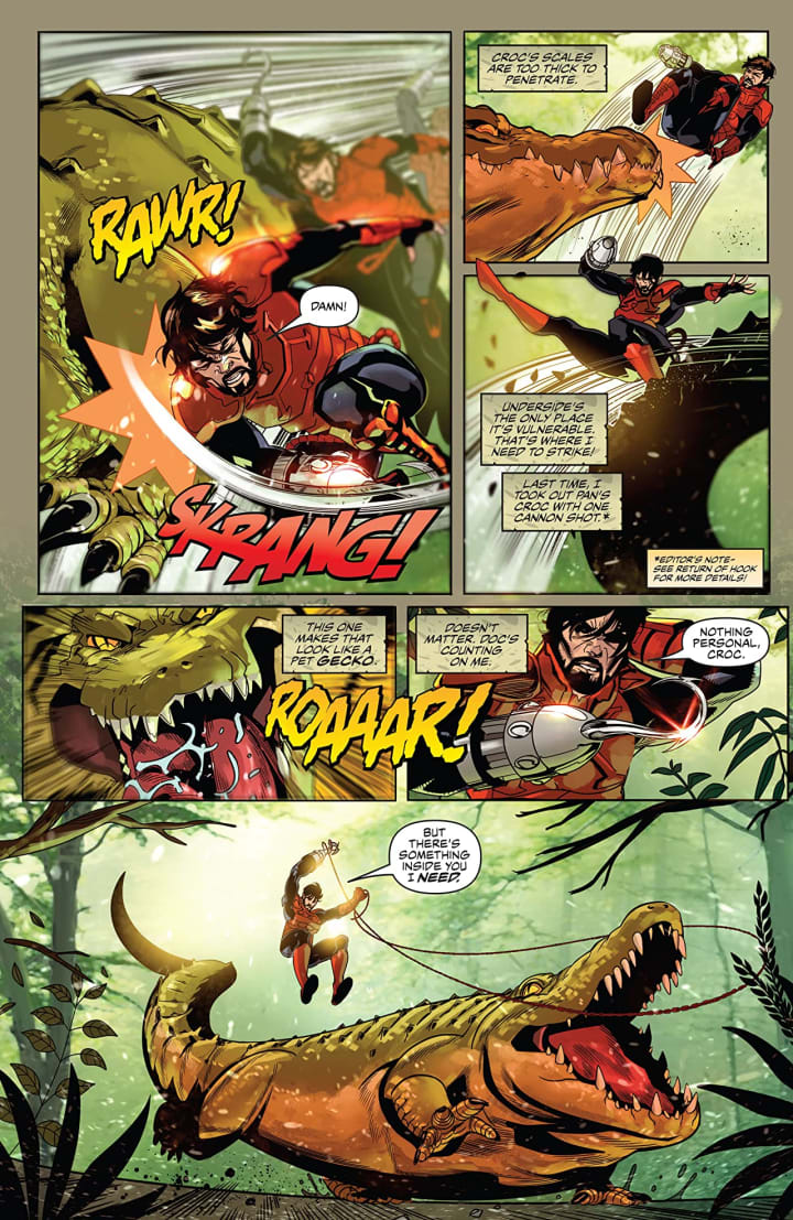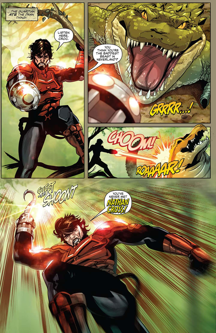 The interiors here are brilliantly rendered. The linework is stupendous and how we see the varying weights and techniques being utilised to bring such great quality detail work is stunning to see. I love the creativity and imagination that we see and whether it is the Croc, how different Nathan looks on Earth versus Neverland, Belle and Tiger Lily and the limited use of backgrounds really captures the readers attention. How we see the depth perception, sense of scale and the overall sense of size and scope of the story is done well. The utilisation of the page layouts and how we see the angles and perspective in the panels show a super talented eye for storytelling. The colour work is fabulous. How we see the various hues and tones within the colours being utilised to create the shading, highlights and shadow work is rendered exquisitely well. I love the effect that Belle’s wings have and how they pop.
