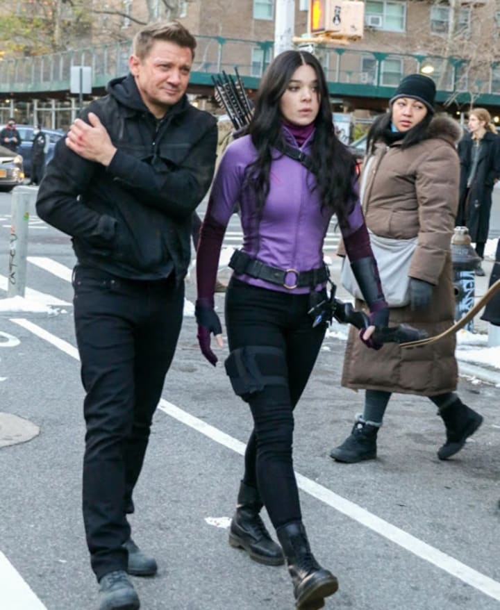 We all cannot wait for the new Marvel series Hawkeye on Disney+, which will be premiering in late 2021 or early 2022. The series follows Clint Barton as Hawkeye, played by Jeremy Renner as he is reprising the role that he has had since the character's cinematic debut in 2011's Thor. The series is also starring Hailee Steinfeld as Kate Bishop, as in the comic Kate Bishop became the new Hawkeye and joined the Young Avengers. Recently, we had a few glimpse of images from the set showcasing Kate Bishop in Hawkeye’s classic purple costume. This Hawkeye series is one of the first MCU phase 4 titles to push to a new generation of Marvel superheroes in their upcoming slate.