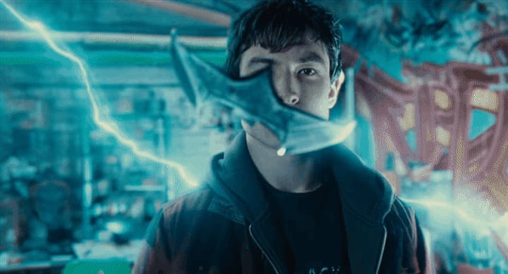 The new footage was relatively short, but there was also time for a "flash" of Ezra Miller's Barry Allen. We see a slow-motion shot of Wonder Woman falling down a shaft while trying to catch her sword; Allen comes to the rescue, RUNNING UP THE WALL, then flipping the sword back to its rightful owner.